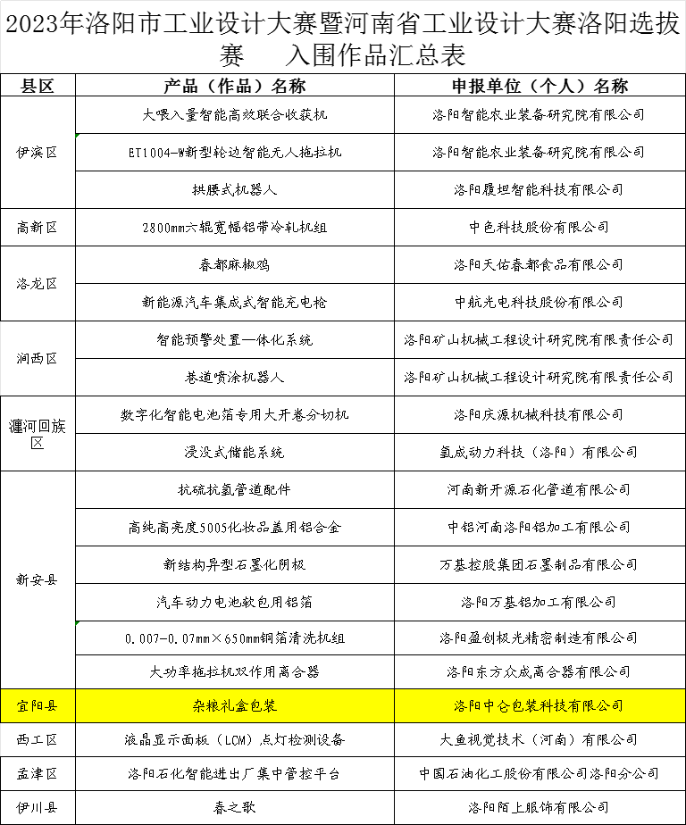 1月16日,中侖包裝收獲了2024年的一個榮譽與肯定,在2023年洛陽市工業設計大賽暨河南省工業設計大賽洛陽選拔賽中,中侖包裝的設計作品從全市100多件參賽作品中突圍而出,與此次參賽的其它19個參賽的高校、院企作品一道,成功晉級河南省工業設計大賽決賽。
